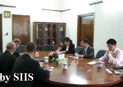 Vaclav Hubinger, Director of Strategy, Analysis and Project Management Office of Ministry of Foreign Affairs of the Czech Republic, accompanied by his colleagues Vikor Michalik of Strategy, Analysis and Project Management Office and Bohumil Mazanek, Consul General of the Czech Republic in Shanghai, visited SIIS and talked with SIIS President Yang Jiemian and fellow colleagues Shao Yuqun, Deputy Director of Institute for Taiwan, Hongkong & Macao Studies, assistant researcher Long Jing of Center for European Studies and Zha Xiaogang of Center for World Economic Studies about the Cross-Straits relations cum outlook, China’s relations with developing countries and with Central Asian countries and energy security.