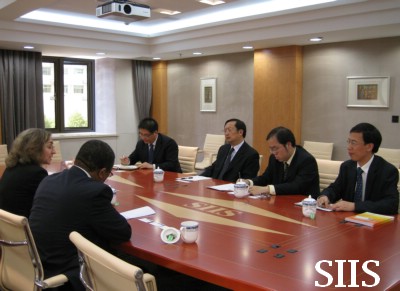 Researchers Moeletsi Mkeki and Elizabeth Sidiropoulos of South African Institute of International Affairs visited SIIS and talked with SIIS President Yang Jiemian and research fellows Zhang Zhongxiang, Niu Haibin and Zhu Ming.