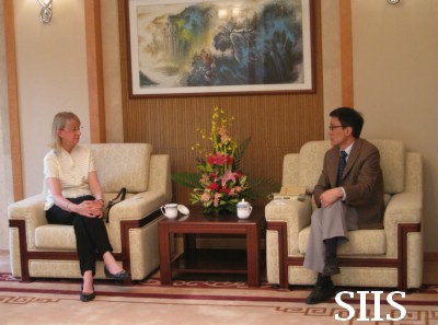 Joan Johnson-Freese, Department Chair of National Security Studies at the Naval War College, visited SIIS and talked with SIIS Vice President Chen Dongxiao, Depury Director Wu Chunsi of Institute for Foreign Policy Studies, and Dr. Yu Yingli about Sino-U.S. cooperation on outer-space, Obama Administration’s policy of outer-space and Sino-U.S. relations. Dr. Joan Johnson-Freese held that America is seeking the domination of outer-space resources, which will stir up arms race on the outer-space and will alienate American allies. American policy on outer-space is greatly influenced by government shifts, the attitudes of the Congress, the budget, the competition among sections and so on. China and U.S. should strengthen their cooperation on outer-space and prevent from stimulating other countries and from triggering arms race and China therefore has to increase its transparency. Obama administration is little different from Bush administration on the goals of national security strategy, except the means and tactics to realize them. Anyway, there is still a long way to go for China and America to enhance their intercommunication and mutual trust.