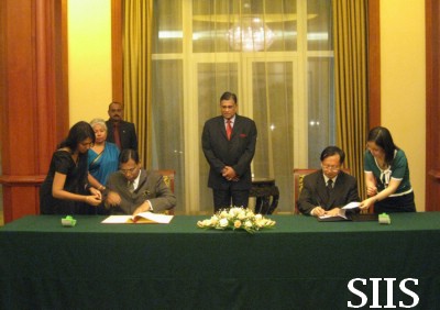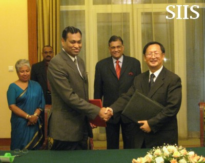 SIIS President Yang Jiemian met with Minister of Sri Lanka Foreign Affairs Rohitha Bogollagama during the Global Think Tank Summit at Beijing and they signed a cooperative treaty between SIIS and Lakshman Kadirgamar Institute of International Relations and Strategic Studies, Sri Lanka.