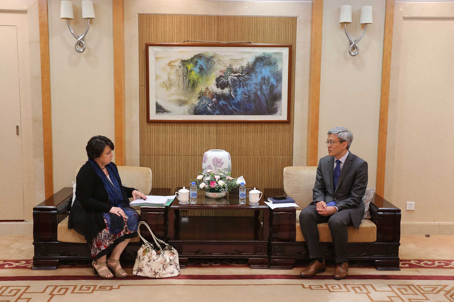 On May 11, 2020, SIIS president Chen Dongxiao met with Dr. Christine Althauser, Consul General of Germany and her colleagues. The two sides exchanged views on China-Germany relations under the Covid-19 pandemic and Shanghai’s economic and social development. Dr. Zhang Pei, Deputy Director of the Department for International Exchanges and Dr. Long Jing, Deputy Director of the Center for European Studies attended the meeting.