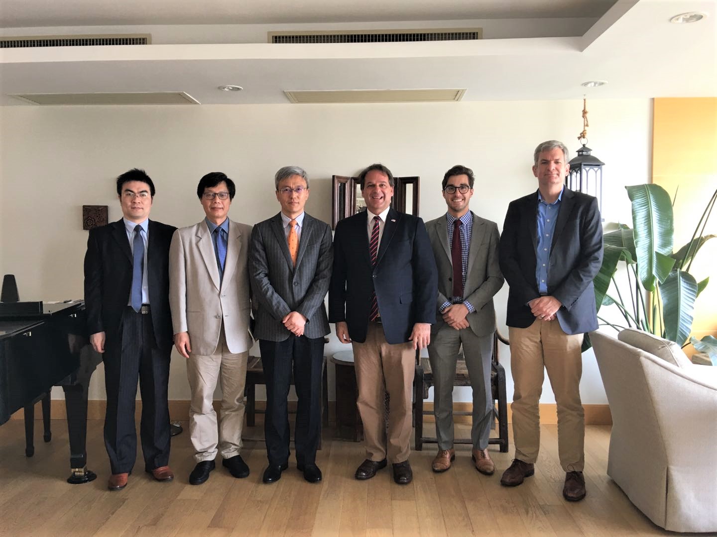On June 2nd, 2020, President Chen Dongxiao met with Mr. Sean Stein, the U.S. consul-general in Shanghai, at his residence. The two sides exchanged views on the latest developments in the China-U.S. relationship and on how to expand subnational economic and trade links between Shanghai and American states and cities. Dr. Zhang Pei, deputy director of the department international exchanges, and Mr. Yang Li, a research fellow at the Center for Maritime and Polar Studies of SIIS also joined the meeting.