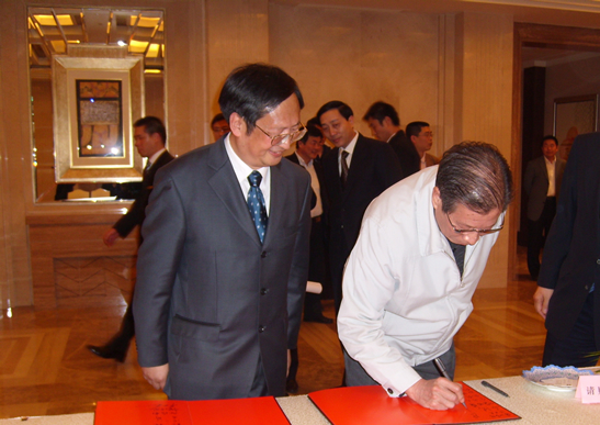 Comrade Li Chuwen Salutes the GuestsPresident Yang Jiemian speaks.President Yang Jiemian speaks.Liao Hui signs the attendance book.Comrade Li Chuwen is escorted by V. President Chen Dongxiao