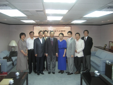 Mainland’s pioneering tourists to visit Taiwan.Met with Mr. Liu De-shun (second from right), Deputy Chairman of Mainland Affairs Council (MAC), and Chang Shu-Ti (left), MAC Chief SecretaryPresident Yang Jiemian met with Mr. Guan Zhong, Vice Chairman of KMT Party