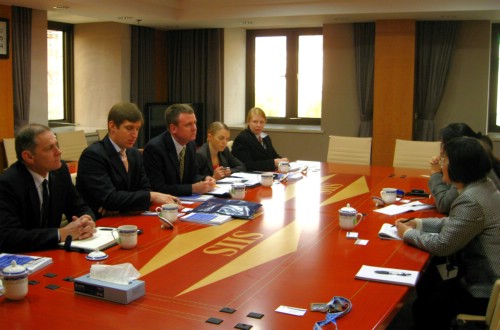 Lachlan Wilson, Assistant Director, China Department, Defense Intelligence Organization of Australian Ministry of Defense, visited SIIS and talked with Ma Ying, Director of Asia-Pacific Studies, and Shao Yuqun, Deputy Director of South Asia Studies, about the development of the South China Sea, the nuclear disarmament on the Korean Peninsula and its impact on regional security, the PLA in attacking pirates and international peacekeeping and issues of Pakistan and Afghanistan.