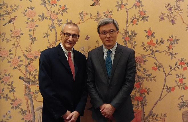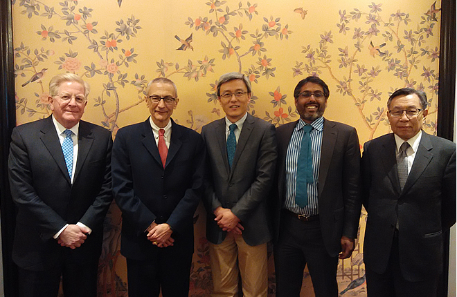 On April 1, Prof.Chen Dongxiao, President of SIIS met with the delegation of Center for American Progress (CAP) headed by Mr. John Podest, founder of CAP, holding discussion on China-American relations and cooperation between SIIS and CAP. Mr.Vikram Singh, Vice President for National Security and International Policy of CAP and Mr. Rudy Deleon, Senior Fellow for National Security and International Policy, Mr. Alan Wong, Executive Director of China-United States Exchange Foundation attended the meeting.