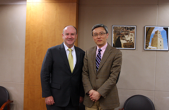 On April 13, Mr. Greg Moriarty, Deputy Secretary of the Department of Foreign Affairs and Trade of Australia visited SIIS. Mr. Greg Moriarty exchanged views on the transformation of international system, security architecture of Asia-Pacific and Iranian nuclear issues with President Chen Dongxiao. Wu Chunsi, director of the Institute for International Strategies Studies, Cai Penghong, senior fellow from the Institutes for Foreign Policy Studies and Phd. Zhou Shixin from the Center for Asia-Pacific Studies attended the meeting.
