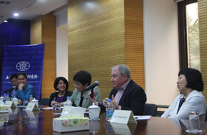 On June 9th, SIIS, US-China Education Trust (USET) and Shanghai Institutes for International Strategic Studies invited Julia Chang Bloch, the president of the USCET and former U.S. Ambassador to Nepal, Michael Parks, the Director of the University of Southern California Annenberg School of Journalism, Hannah Beech, the East Asia Bureau Chief and China Bureau Chief for TIME magazine and Amy Celico, the Principle for China & East Asia at Albright Stonebridge Group to deliver speech on the coming Xi-Obama Summit at SIIS. President Chen Dongxiao met with U.S. experts. Wu Chunsi, the Director of the Institute for International Strategic Studies chaired the discussion.