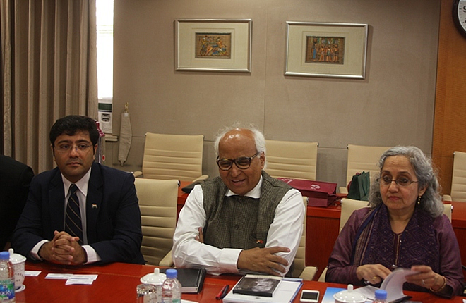 On April 28th, SudheendraKulkarni, Chairman of the Observer Research Foundation Mumbai led a delegation visited SIIS. The delegation and SIIS experts discussed issues regarding “One Belt, One Road” initiative, cooperation between China and India in the Asian Infrastructure Investment Bank and BRICS Bank, and social and economic exchanges between Shanghai and Mumbai as sister cities. Prof. Zhao Gancheng, Director of the Center for Asian-Pacific Studies, Prof. Yu Hongyuan, Director of the Institute for Public Policy and Comparative Politics, and research fellows Dr. Liu Zongyi, Dr. Wang Weihua and Dr. Wang Yuzhu attended the meeting.
