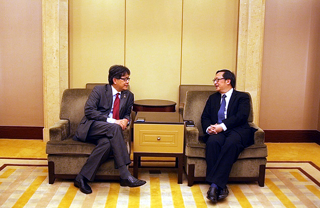 On May 7th, Prof. Yang Jiemian, Chairman of the Council of SIIS Academic Affairs, met Malaysian Ambassador Dato’ Zainuddin Yahya, and exchanged views on cooperation between Malaysia and China of the “One Belt, One Road” initiative, culture exchanges and people to people contact.