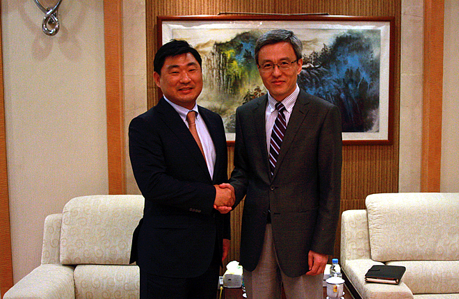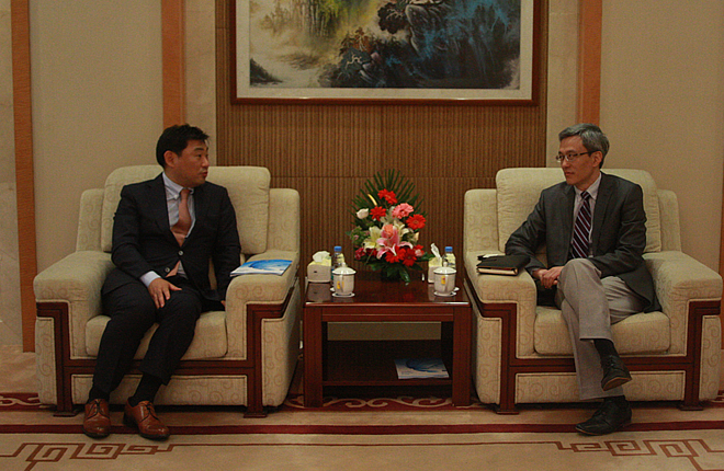 On May 19th, Mr. Han Sukhee, Korean Consul-General in Shanghai, visited SIIS and exchanged views on Sino-Korean relations and academic exchanges with President Chen Dong Xiao. Gong Keyu, Deputy Director of the Asian-Pacific Studies attended the meeting.