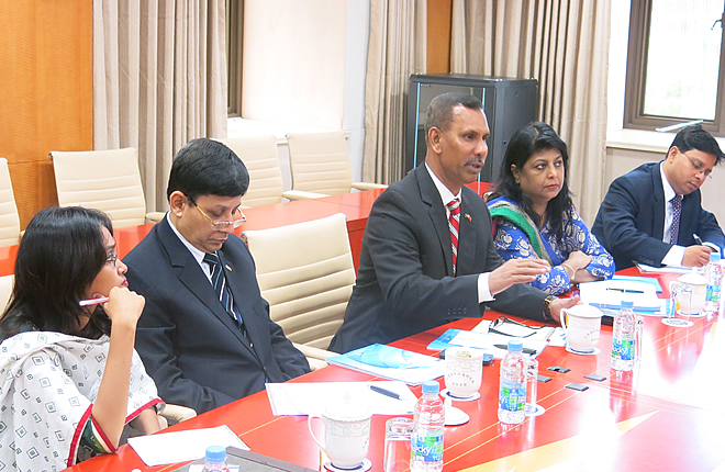 On May 28, Major General A. K. M. Abdur Rahman, Director General of the Bangladesh Institute of International and Strategic Studies (BIISS), led a delegation to SIIS and exchanged ideas on “One Belt One Road”, BCIM Economic Corridor, and the AIIB with SIIS President Chen Dongxiao, Dr. Cai Penghong, senior research fellow of the Institute for Foreign Policy Studies, and Dr. Xue Chen, research fellow of the Institute for International Strategic Studies.
