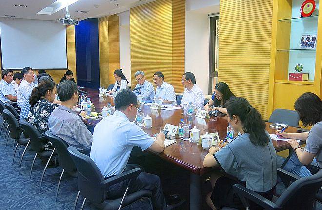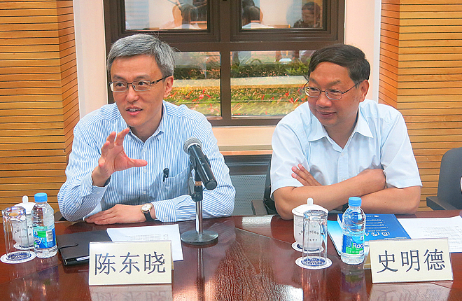 On July 9th, Mr. Shi Mingde, Ambassador of PRC to Germany, accompanied with Ms. Li Fangxia, Director of European and African Affairs Division, Shanghai Foreign Affairs Office, had visited SIIS, having discussion on the issues of the Greek debt crisis, Ukraine crisis and the “One Belt One Road” initiative with President Chen Dongxiao and other research fellows of SIIS.