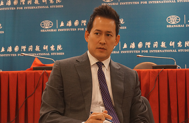 On Nov. 4th, Mr. Rian L. Jensen, Economical Officer of U.S. Consulate General in Shanghai visited SIIS, exchanging views on the issues of China-South Korea trade relations and the prospects of China-Japan-S. Korea FTA negotiations with Dr. Zhang Xiaogang and Dr. Pan Xiaoming, research fellows of the Institute for World Economy Studies.