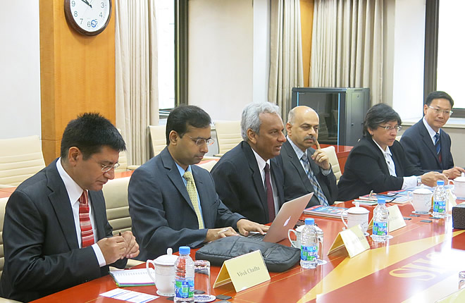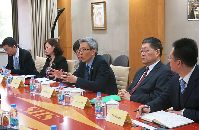 On April 8, 2016, escorted by Ambassador Li Bijian, minister counselor of Chinese Embassy in India, Mr. Jayant Prasad, President of Institute for Defense Studies and Analysis (IDSA, India) led a delegation of the institute visiting SIIS. President Chen Dongxiao, Prof. Wu Chunsi, director of the Institute for International Strategic Studies and other scholars had a discussion with the delegation on China-India cooperation in the fields of economy, science and technology, security and counter-terrorism etc. The two think-tanks also signed the MOU after the meeting.
