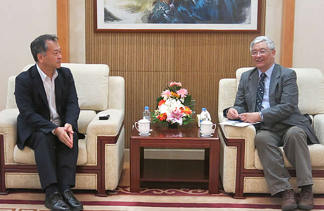 On June 2, 2016, Mr. Shigeru Yanagida, Representative Senior Managing Director from Norinchukin Research Institute Co., Ltd. (Japan) and his colleague, Mr. Wang Leixuan visited SIIS. Prof. Wu Jinan, Vice Chair of SIIS Consulting Committee hosted a meeting with Mr. Yanagida joined by Prof. Chen Youjun and Dr. Pan Xiaoming from the Institute for World Economic Studies. The two sides had a discussion on “One Belt and One Road” Initiative and China-Japan economic relations.