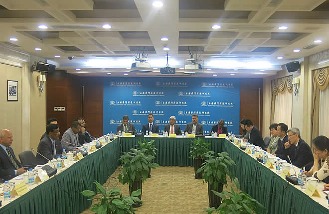 On May 6, 2016, a delegation from National Defense University, Pakistan visited SIIS. Headed by Major General Noel Israel Khokhar, Director of the Institute for Strategic Studies, Research and Analysis (ISSRA) of NDU, the delegation consisted of staff from Pakistan military and foreign affairs ministry and also joined by Nigeria, Iran, Sudan and Turkey members. President Chen Dongxiao hosted a roundtable for the NDU delegation with the participation of Prof. Wu Chunsi, director of the Institute for International Strategic Studies, Prof. Shao Yuqun, director of the Institute for Taiwan, Hongkong and Macao Studies, and Prof. Zhao Gancheng, etc. The two sides had a discussion on “One Belt One Road” strategy and China-Pakistan economic corridor, the U.S. General election, the role of the Shanghai Cooperation Organization, and Afghan peace talks etc.