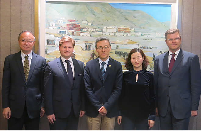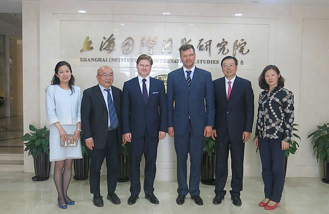 On May 19 and 20, 2016, Mr. Sergejs Potakins, Congressman from the Concord Party of Latvia, Chairman of the Latvian- Chinese group of inter-parliamentary cooperation, and his colleague visited SIIS escorted by Mr. Yang Guoqiang, former Chinese Ambassador to Latvia. President Prof. CHEN Dongxiao exchanged views with them. They also had a discussion with Prof. Li Xin, director of the Center for Russian and Central Asian Studies, and Prof. Qiang Xiaoyun, deputy director of the Center for Russian and Central Asian Studies on EU-Russia cooperation, EU-China relations, and Latvia-China relations etc.