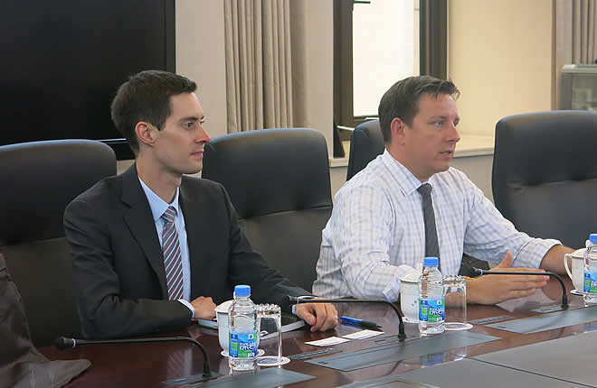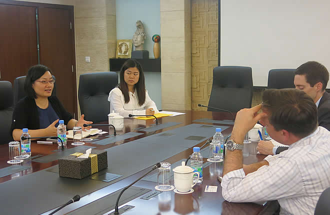 On May 26, 2016, Mr. Jonathan Crawford, Political Consul and Mr. Steven Angel, Defense Liaison Officer from the Consulate-General of the U.S. in Shanghai visited SIIS. They had a discussion with Dr. Tong Liqun from the Institute for Taiwan, Hongkong and Macao Studies on Ms. Tsai Ing-wen’s inaugural address and Cross-Strait relations. They also had a meeting with Prof. Zhang Yao, Dr. Xue Chen and Dr. Xue Lei from the Center for Marine and Polar Studies on the South China Sea issue.