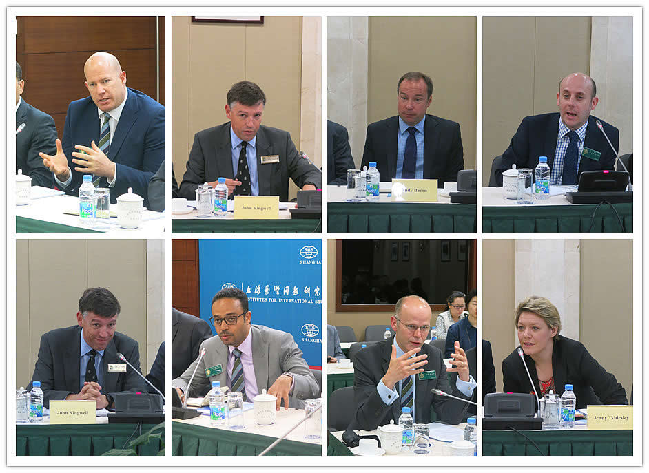 On June 3, 2016, headed by Mr. James Kidner, senior directing staff of the British Foreign and Commonwealth Office, a delegation of the Royal College of Defense Studies (RCDS, UK) visited SIIS. Officials from the British Embassy in China and Consuls from the British Consulate-General in Shanghai also joined the tour. More than 20 senior military officers and diplomats from Europe, Middle East and Africa including Rear Admiral John Kingwell, Deputy Commandant of RCDS had a meeting with Prof. Zhang Haibing, director of the Institute for World Economic Studies, Prof. Ye Jiang, senior fellow of the Institute for Global Governance, Ms. Li Fangxia, deputy director of the department for international exchanges, Prof. Ye Yu, Dr. Xue Lei, Dr. Xue Chen and Dr. Wang Yuzhu. The two sides had very intensive discussion on the South China Sea issue, the strategic significance of “One Belt and One Road” Initiative, China’s perspective on the integration of Europe, and internet management in China etc.