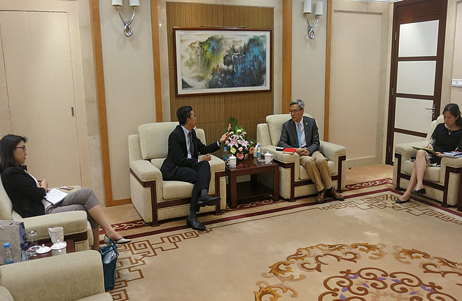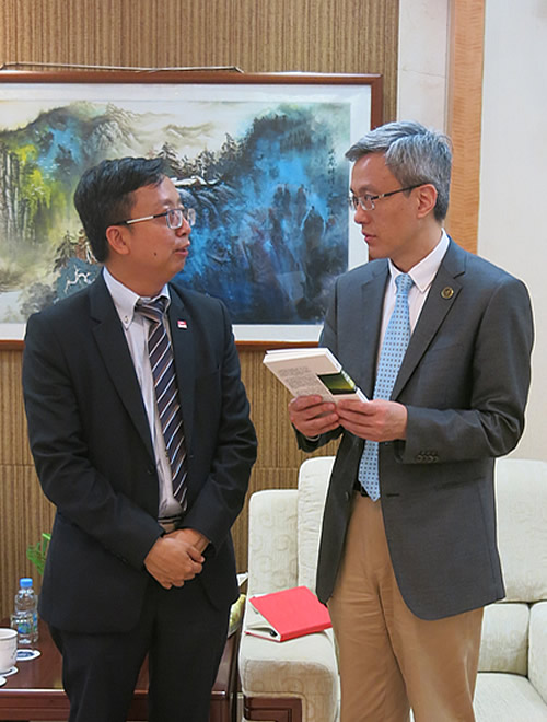 On June 30, 2016, Mr. Loh Tuck Wai, Consul-General of Singapore in Shanghai and his colleague visited SIIS. They had a meeting with President Chen Dongxiao and Ms. Li Fangxia, deputy director of the department of international exchanges. The two sides exchanged views on China-Singapore relations, South China Sea issue and China-U.S. relations etc.