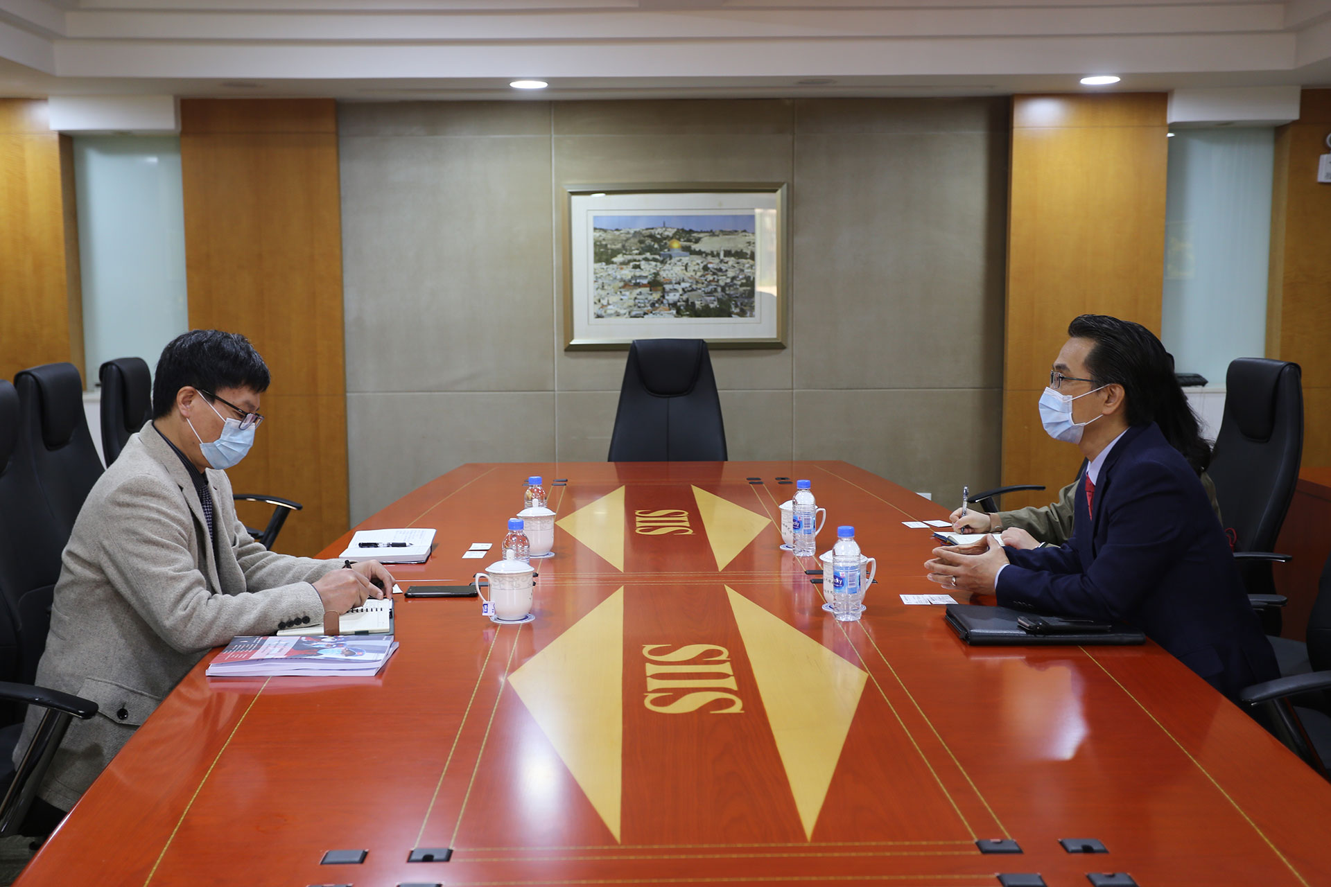 On April 16, 2020, Mr. Sunghwan Chun, Consul of Political Affairs at the Consulate-General of the Republic of Korea in Shanghai and his colleague visited SIIS. Mr. Chun had a discussion with Dr. Zhang Pei, deputy director of the department for International Exchanges and External Cooperation and Ms. Sun Shasha on international cooperation against COVID-19 and future communication and cooperation etc.