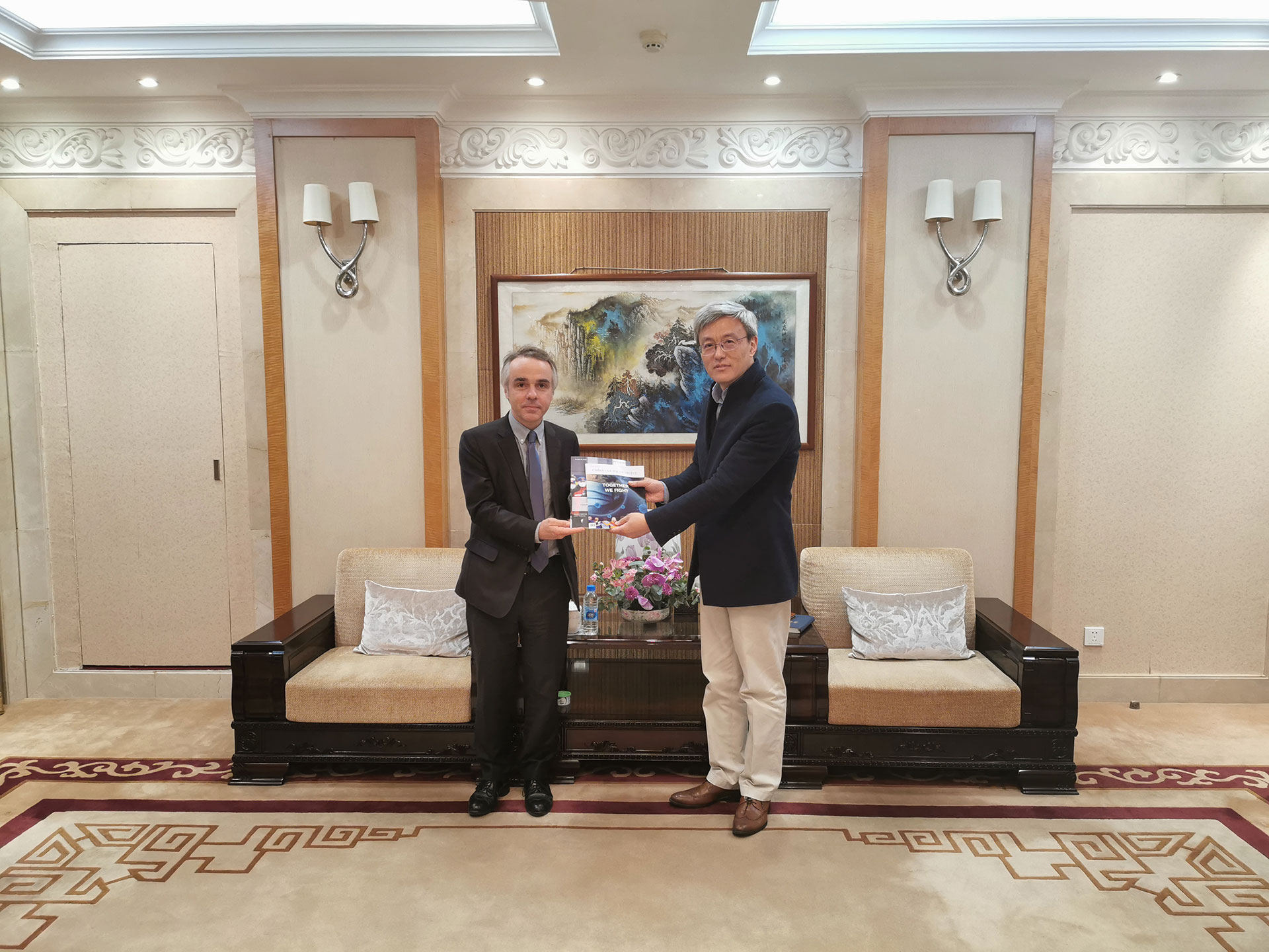 On April 17, 2020, SIIS President Chen Dongxiao met with Mr. Benoît Guidée, Consul General of France in Shanghai. Both sides exchanged views on the impact of COVID-19 on international situation and international order, China-US relations, China-Europe relations, and Shanghai’s experience in combating the pandemic etc.