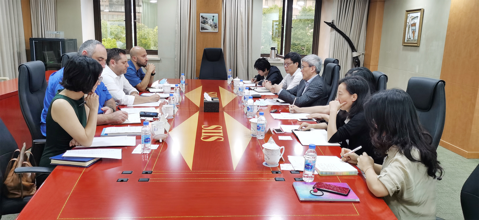 On July 16, 2020, Ambassador Peleg Lewi, Consul General of Israel in Guangzhou and his colleagues visited SIIS, and had an in-depth discussion with SIIS scholars on the impact of the COVID-19 pandemic on the global economy and China-Israeli relations. SIIS president Prof. Chen Dongxiao hosted the discussion. Dr. Shao Yuqun, Director of the Institute for Taiwan, Hong Kong & Macao Studies, Dr. Zhang Pei, Deputy Director of the Institute for International Exchanges, Dr. Ye Yu, Assistant Director of the Institute for World Economy Studies,Dr. Liu Xin, Assistant Director of the Institute for Foreign Policy Studies, and Dr. Zheng Yingqin, research fellow at the Institute for Taiwan, Hong Kong & Macao Studies participated in the meeting.