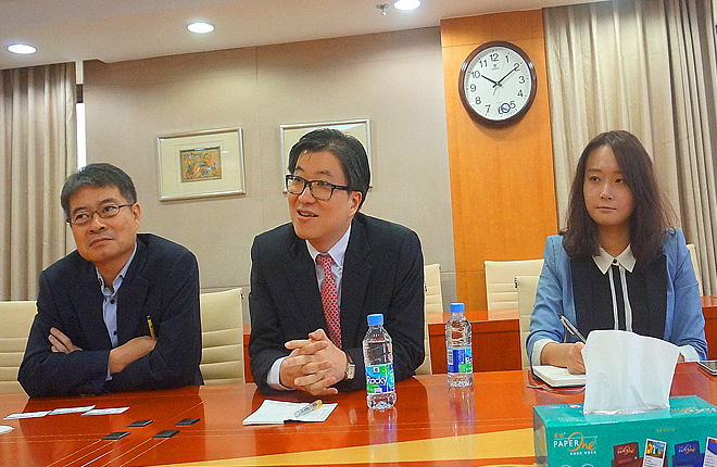 11月3日,韩国驻沪总领事馆领事金希相来访我院,与世界经济研究所所长张海冰,成员査晓刚、王玉柱就G20峰会、中日韩首脑会晤等议题进行了交流。