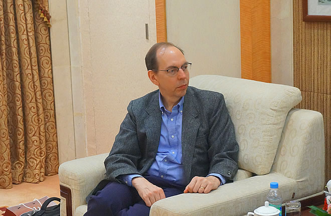 12月17日,美国宾夕法尼亚大学东亚研究中心主任戴杰(Jacques deLisle)来访我院,就两岸关系、台湾选举发展态势、南海问题等议题与美研中心主任邵育群进行交流。世界经济研究所成员薛磊在座。