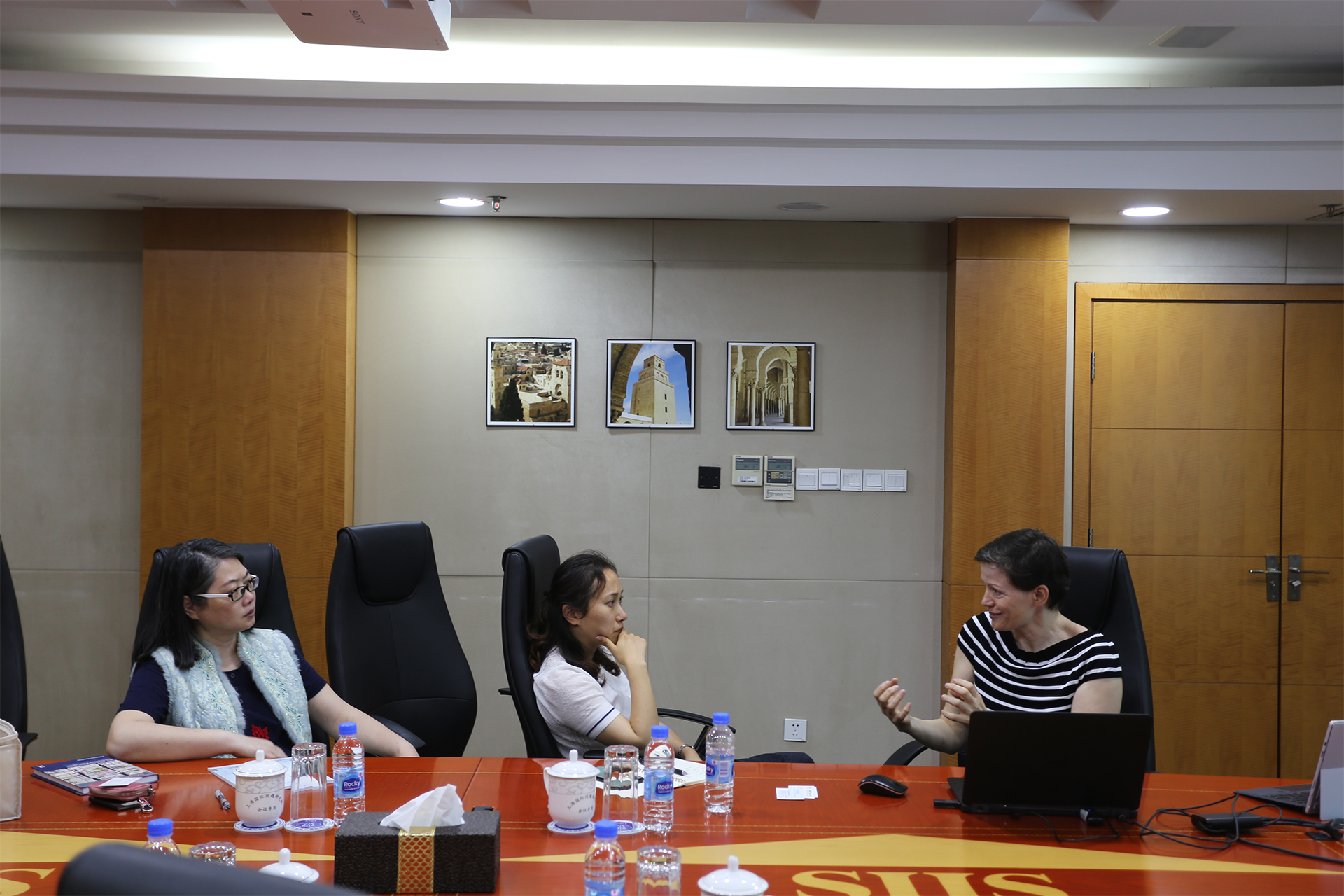 2019年6月10日,德国斯图加特大学教授Cathleen Kantner来访我院,与欧洲研究中心主任张迎红、副主任龙静等就人道主义军事干涉、跨国政治交流、欧盟身份认同等议题进行了交流。