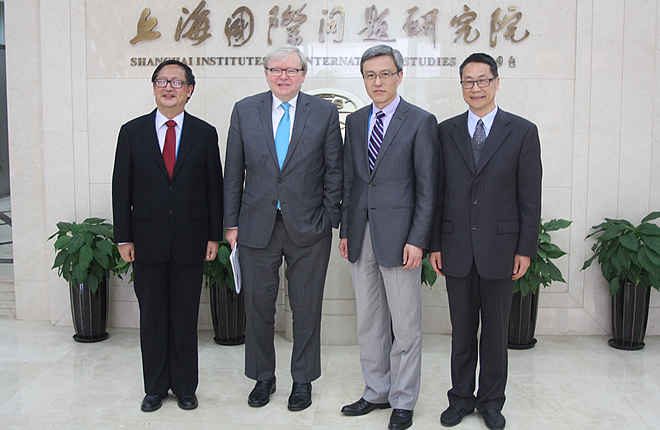 2015年4月22日下午,美国哈佛大学肯尼迪政府管理学院贝尔福中心高级研究员、澳大利亚前总理陆克文(Kevin Rudd)到访上海国际问题研究院发表演讲,并为其最新的研究报告《习近平治下的中美关系未来》举行发布会。