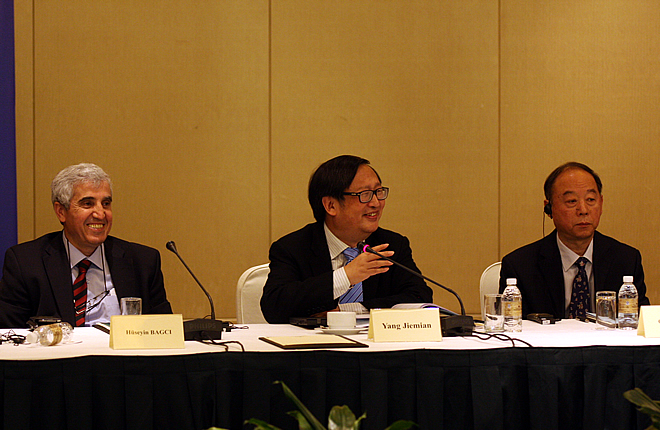 2015年5月11-12日,上海国际问题院主办召开第三届亚信智库圆桌会议:“亚洲安全合作:议题、理念和机制”。来自阿富汗、中国、土耳其、哈萨克斯坦、伊朗、马来西亚、巴基斯坦、俄罗斯、塔吉克斯坦、泰国的35位代表参加了会议,陈东晓院长主持了开幕式,杨洁勉主任主持了会议的总结讨论和闭幕式,中国驻亚信会议高官邢芳芳参赞作主题发言。