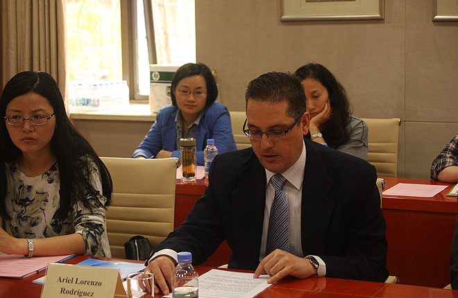 5月14日,为纪念中国和古巴建立外交关系55周年,上海国际问题研究院与古巴驻上海总领事馆联合举办了题为“面向共同发展的中古关系”的学术研讨会。与会代表回顾了中古两国的友好关系史,剖析了当前中古关系面临的机遇与挑战。会议代表指出,在两国均处于国内发展的新阶段,两国对外关系日趋多元化。在中拉关系迈向整体合作的新形势下,中古友好关系面临着深化经济与人文合作的新机遇。陈东晓院长主持开幕式,古巴驻沪总领事罗伦索作主旨发言。来自上海国际问题研究院、上海社科院和上海外国语大学的学者参加了本次研讨会。