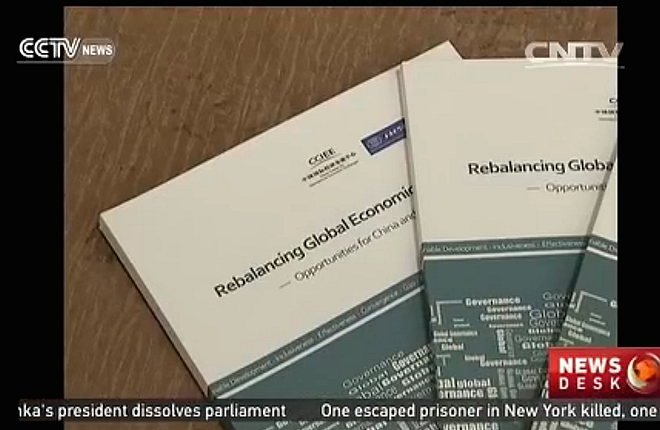 中央电视台报道的由我院参与撰写的《全球经济治理再平衡》报告样稿