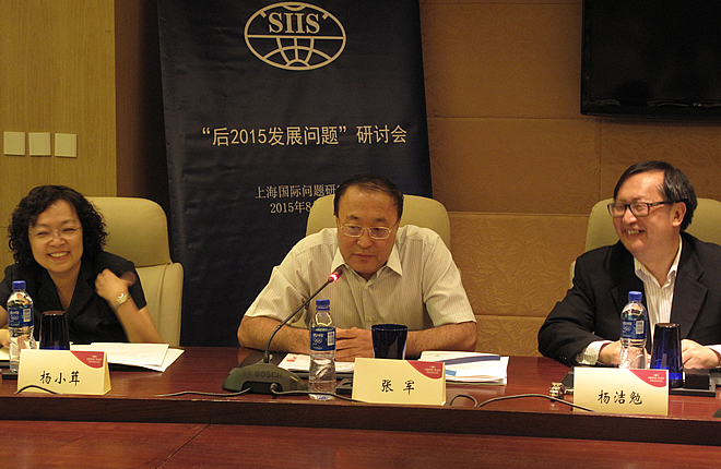 8月26日,上海国际问题研究院学术委员会杨洁勉主任率本院代表团在京召开了“2015年后全球发展问题和中国对策”研讨会。该研讨会由上海国际问题研究院主办,参会代表包括外交部、财政部、商务部、教育部、全国妇联等中央部门的官员。外交部国际经济司、张军司长、外交部政策规划司杨小茸副司长、财政部国际财金合作司杨英明副司长参会并做主旨演讲。会议期间,我院还发布了由本院课题组就2015年后全球发展问题所撰写的专题研究报告。