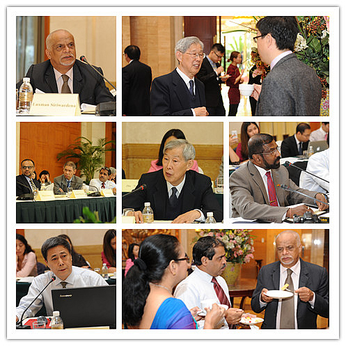 11月5日,在中国驻斯里兰卡大使馆支持下,上海国际问题研究院与斯里兰卡探路者基金会在上海虹桥迎宾馆共同举办“海上丝绸之路与中斯关系”国际研讨会。院长陈东晓、原斯里兰卡驻华大使、斯里兰卡探路者基金会主席博纳德·古纳提莱克(Bernard Goonetilleke)致开幕辞;中国前驻印度、巴基斯坦、印尼和马来西亚大使周刚、斯里兰卡驻沪总领事Lakshitha Ratnayake、斯里兰卡原海军总司令加亚纳斯·科伦巴吉(Jayanath Colombage)等贵宾出席了会议;本院学术委员会主任杨洁勉和斯里兰卡南方发展局主席希让沙·赫拉斯(Shirantha Herath)作总结发言。来自北京大学、中国现代国际关系研究院、海军研究院、斯里兰卡佩拉德尼亚大学,斯里兰卡Aitken Spence集团、斯里兰卡政策研究所、中斯双方企业家代表共50多名与会者参加了研讨。