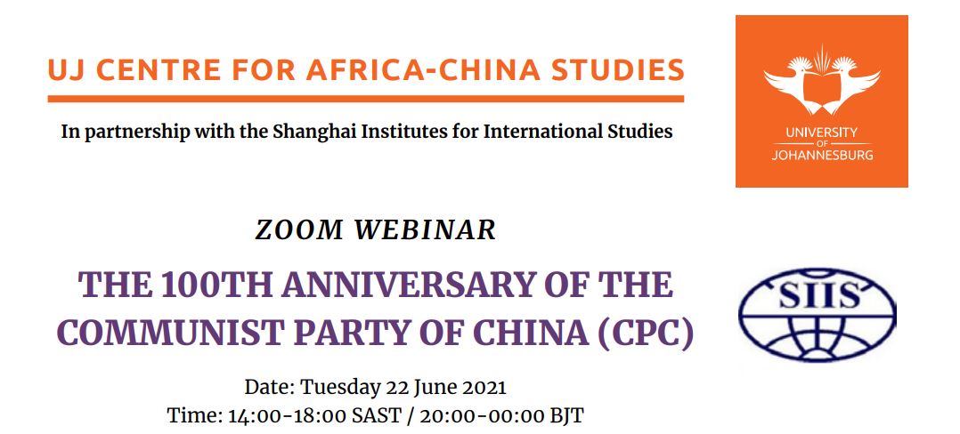 2021年6月22日,我院与南非约翰内斯堡大学非洲-中国研究中心、中国非洲研究院联合举办“庆祝中国共产党建党100周年”(The 100th Anniversary of the Communist Party of China )国际视频会议。