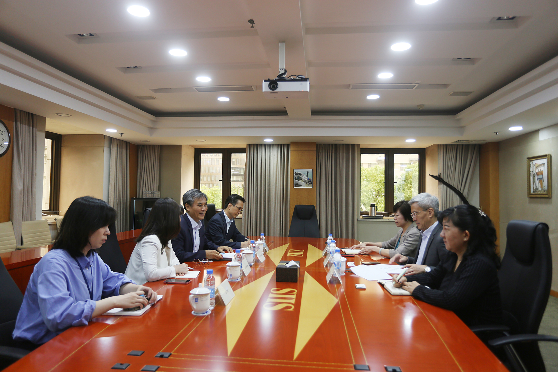 2021年7月2日,我院院长陈东晓会见了韩国驻沪总领事金胜镐(Kim Seungho)一行。金胜镐总领事首先就中国共产党建党百年表示祝贺,陈东晓院长也向韩方介绍了我院为庆祝建党百年而举办的系列活动。同时双方还就近期的中美关系、国际贸易等问题进行交流。国际合作与对外交流处处长朱菊华、亚太中心副主任龚克瑜陪同参与了会见。