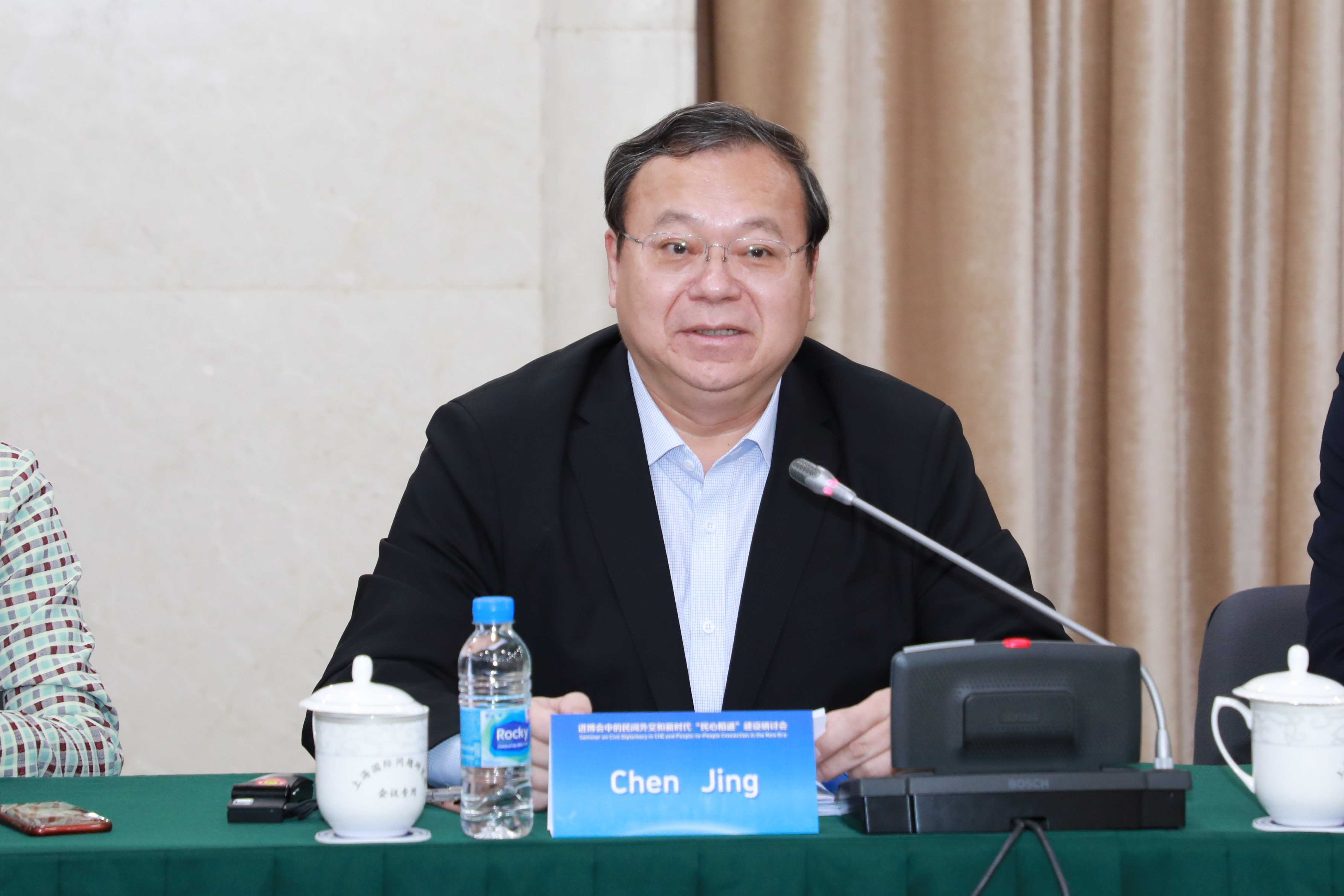 上海市人大常委会副主任、上海市人民对外友好协会会长陈靖在开幕致辞中表示,习近平总书记指出进博会“交易的是商品和服务,交流的是文化和理念”,精辟道出了进博会与民间外交有着天然契合、互促共荣的关系,进博会“迎的是五洲客,计的是天下利,顺应的是各国人民对美好生活的向往”,这其中包含了民间外交的三项核心内容:友好交往、互利共赢、服务人民。陈靖建议,要把市友协的理事单位发动起来,把上海的国际友人、友好城市、友好组织联系起来,共同构建进博会民间外交的工作体系,更好地服务进博会、服务国家外交、服务上海经济社会发展。