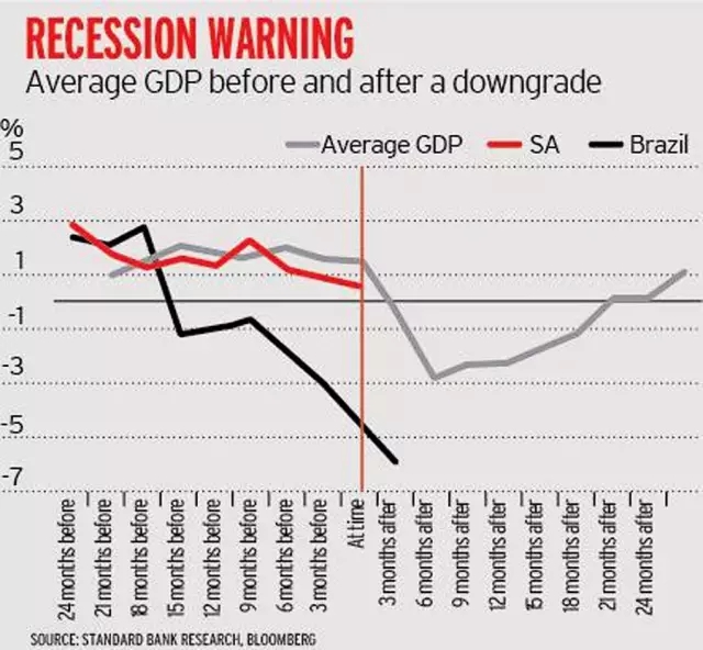 更为严重的是,国际评级机构的这种评级下调,似乎已经成为了被降级国家经济进一步下滑的“落井石”。去年,南非标准银行曾经对主权信用失去“投资级”的国家经济状况进行过研究。研究显示,巴西、俄罗斯、保加利亚等国的主权信用失去“投资级”后基本都经历了长达两年的经济衰退。