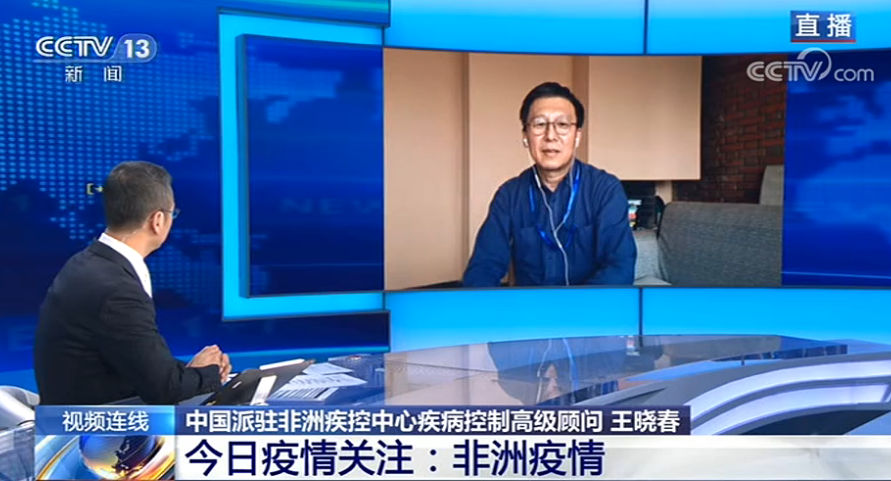 图为央视新闻连线中国派驻非洲疫控中心高级顾问王晓春