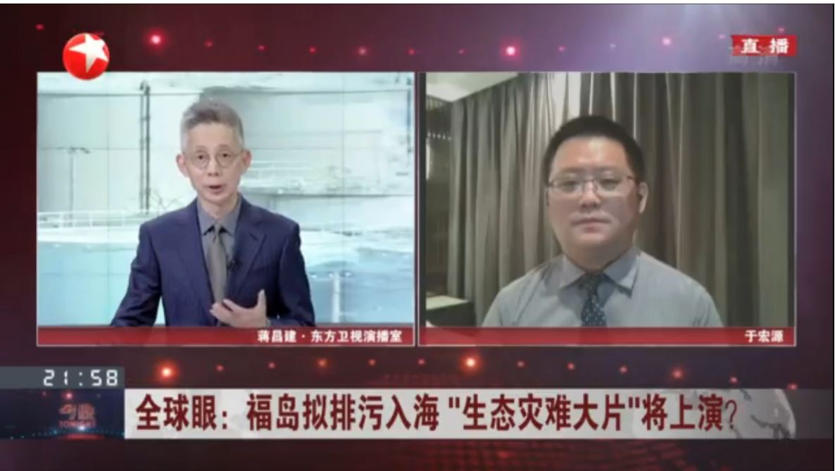 于宏源研究员就日本福岛拟排污入海问题接受东方卫视采访