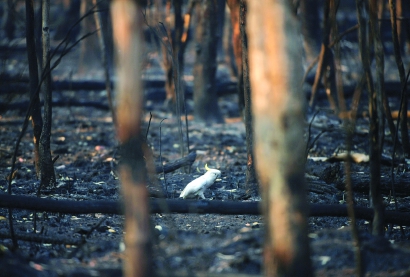 从2019年年底开始,澳大利亚发生罕见规模林火。今年1月11日,在澳新南威尔士州东南部科希丘什科国家公园,一只受伤的鹦鹉在过火的丛林里觅食。新华社发