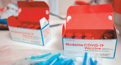 8月中旬以来,日本多地接种点陆续报告多批次莫德纳疫苗疑似遭异物污染,上百万剂疫苗被暂停使用。图为3月13日在美国林奇堡拍摄的莫德纳疫苗。(新华社/法新)