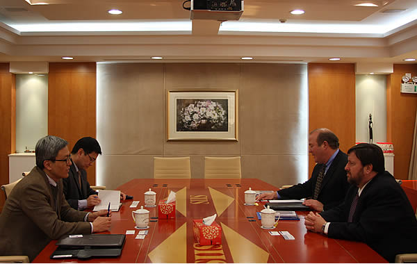 3月12日下午,美国海军研究生学院(Naval Postgraduate School, NPS)全球公共政策系副教授、全球挑战论坛(Global Challenges Forum, GCF)主任沃尔特·克里斯特曼(Walter Christman)及美国国家亚洲研究局(The National Bureau of Asian Research, NBR)资深研究员甘浩森 (Roy Kamphausen),并同陈东晓副院长、国际战略研究所成员薛晨进行交流。