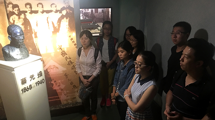 ? ? ? ? 之后,在蔡元培故居,同学们从解说员的讲解中回忆了蔡元培先生的一生,深入了解先生对中国教育及革命事业所做出的的开创性贡献,并为之深深触动。蔡元培的事迹鞭策着同学们不断进取,敢为人先。