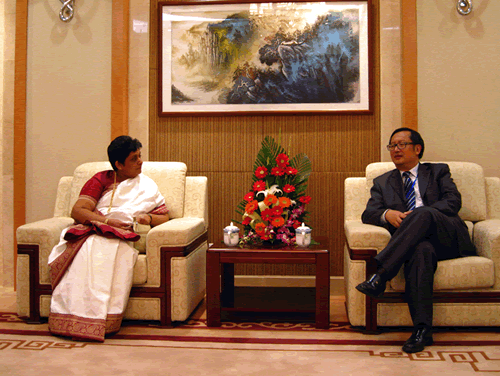 2009年11月25日下午斯里兰卡拉克什曼卡迪加马国际关系及战略研究院董事会成员Suganthie Wijayasuriya Kadirgamar来访本院,与杨洁勉院长、南亚研究中心主任赵干城、副主任邵育群就南亚形势等问题进行了深入的学术交流。
