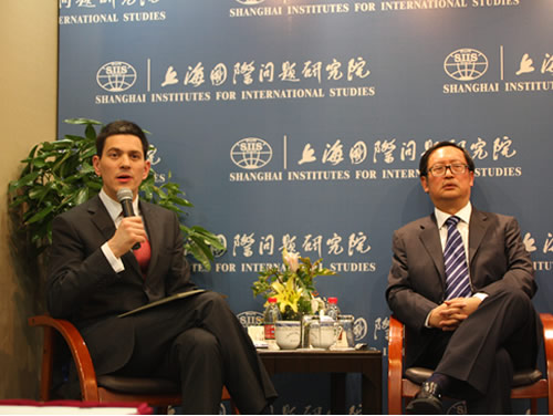 2010年3月15日上午,英国外交大臣戴维·米利班德访问上海国际问题研究院并作为该院院庆50周年“名家讲坛”嘉宾的身份发表了演讲。米利班德在演讲中纵论了当前国际形势,积极评价中国在国际舞台上发挥的重要作用。他强调,英国高度重视英中两国的全面战略伙伴关系,两国领导人面对面的交流对促进双边关系的发展,加强双方在重大国际问题上的合作,有着不可替代的重要作用。他在回答听众的提问时表述了对当前国际热点问题的看法,并预祝上海世博会圆满成功。约百余位与会者来自本市有关国际问题的研究,教学和政府部门。中英两国的媒体工作者也对演讲会进行了采访和报道。(米利班德的演讲稿下载)