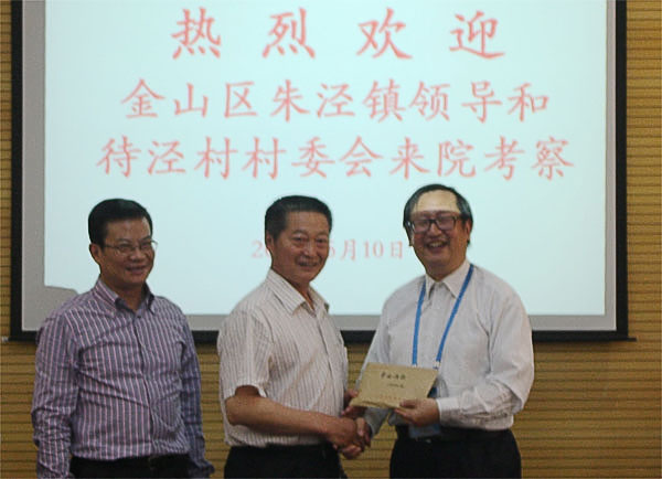 5月10日上午,金山区朱泾镇领导和待泾村村委会来院考察。杨洁勉院长致欢迎词,介绍我院工作情况,并代表我院向待泾村困难学生赠送助学捐款。朱泾镇党委书记过维义介绍朱泾镇经济社会发展情况,待泾村党总支书记、村委会主任黄桂华等出席并发言。参加会议的还有杨剑副院长、院学术委员会副主任吴寄南、院办公室主任、组织人事处处长陶盼和及院党总支书记张迎红等。